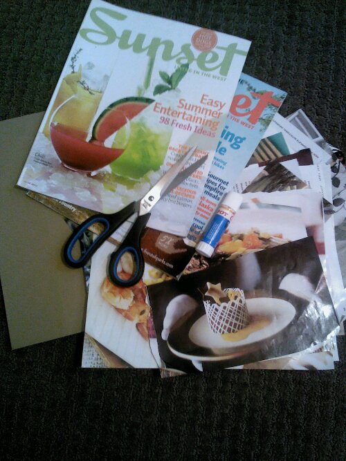 All you need are some old magazines, a glue stick, some scissors and something made of thick paper or cardboard to cover with your creation.