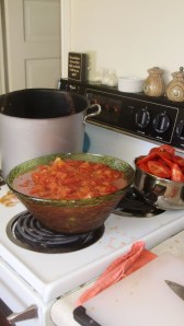 So right now I have a sink full of dishes, a pan that I can’t clean, a trashed kitchen for my landlord to enjoy and bowls full of half cooked tomato sauce sitting on both counters! Pretty soon though – I’ll have lots and lots of home made tomato sauce sitting up in my cupboard!
