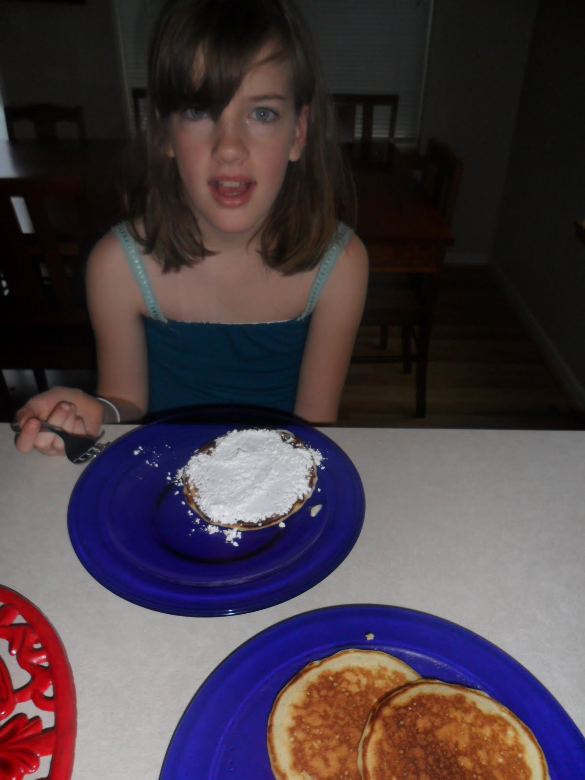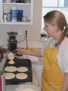 4. When griddle is nice and hot, use a measuring cup to poor batter onto griddle to make preferred size of pancakes.