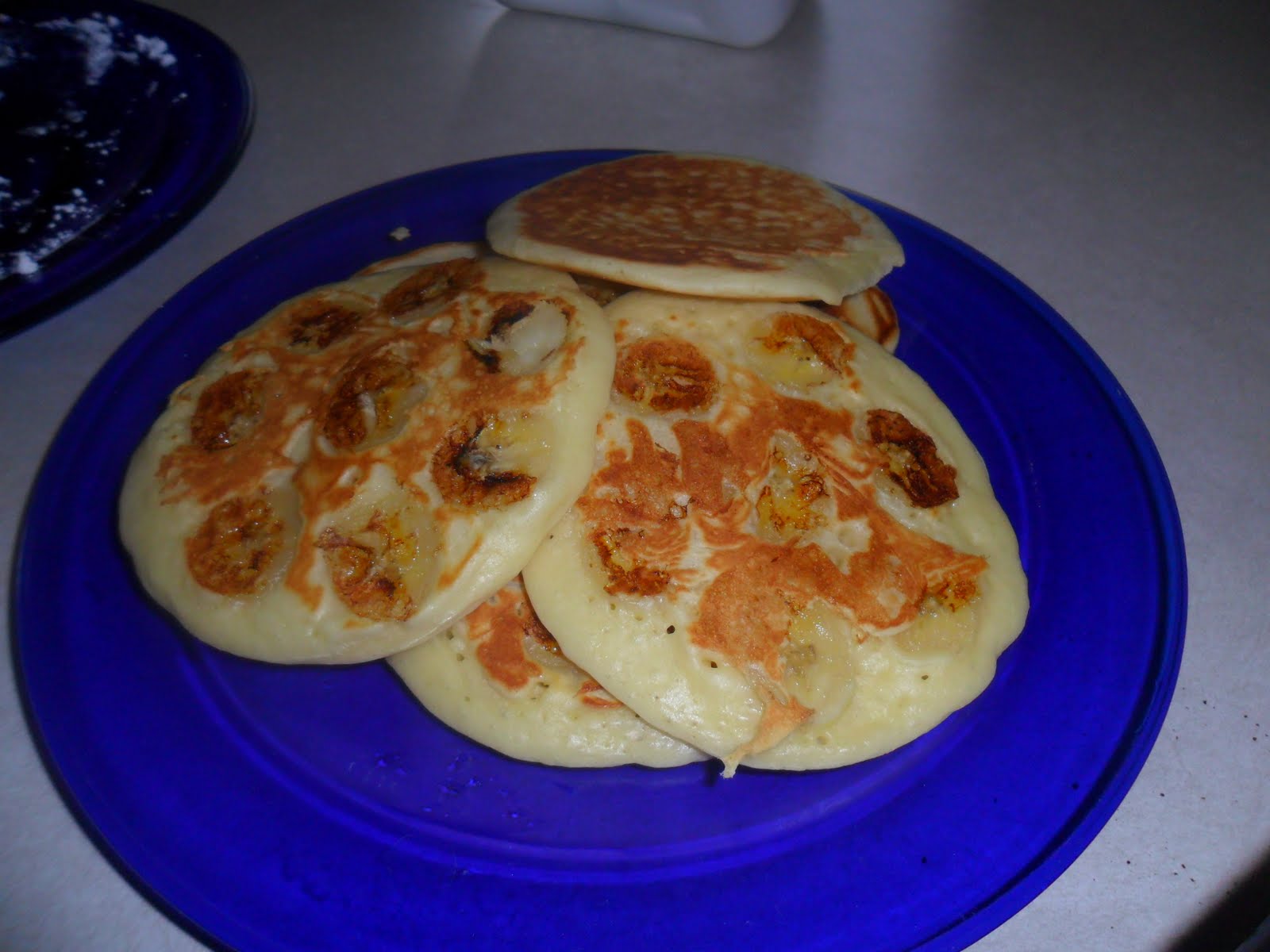 6. To make banana pancakes – simply thinly slice a banana into coins and lay on the pancake AFTER the batter is poured but BEFORE it is flipped.